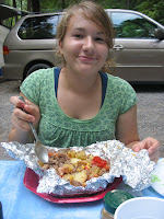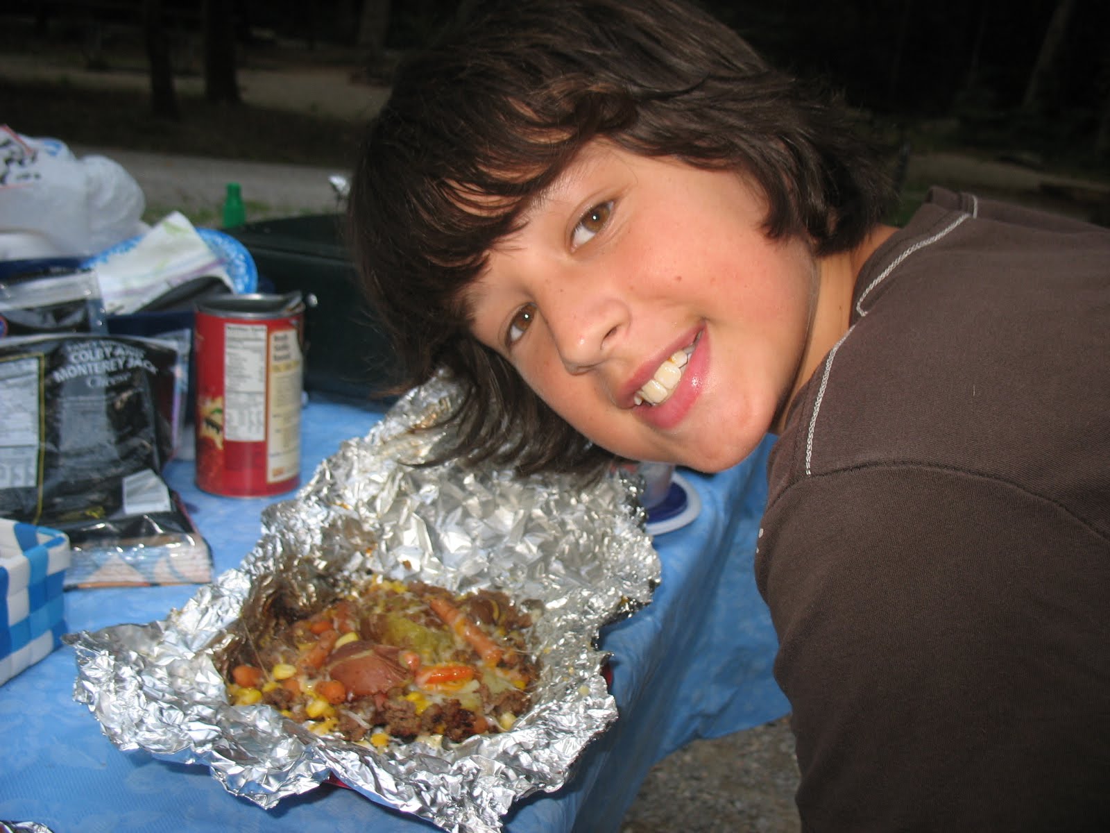 Build a fire (wood or charcoal) and let it burn down to glowing coals. Use heavy duty aluminum foil (about 24 inches each) as “packaging”. Spread out the variety of ingredients on a large table; let each person create their own meal. Writing with permanent marker is a good thought, but it really doesn’t work well. Just watch where you place each person’s package. 🙂 Once you fill your foil, fold it tightly on the top, then fold in the sides tightly, so nothing spills out. Place each packet onto the coals, and allow them to cook until you hear sizzling and cooking going on … at least 10 minutes. It’s not an exact science … that makes it fun! You will need two long handled tools (spatulas or sticks) to lift the packages in/out. You CAN put one back on the fire if you need to.