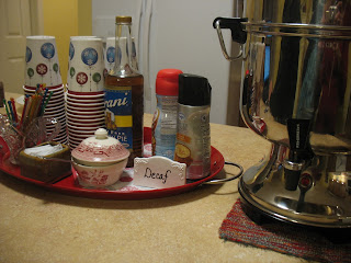 A basic part of most Sanders’ events includes coffee. I’ve found that setting up a coffee “tray” helps to communicate to my guests that I prepared for them, that they are important, and that I want them to be blessed in my home. It also helps ME to stay organized, do quick checks of supplies, and feel like things are kept orderly. That really helps the peace in the kitchen. My sweet friend Jenny gave us a bright red tray for Christmas last year, and it makes the perfect place to prepare a coffee tray. I like to include these items: