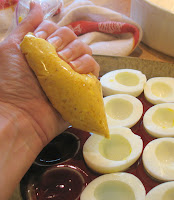 - Pipe cream into each egg half.