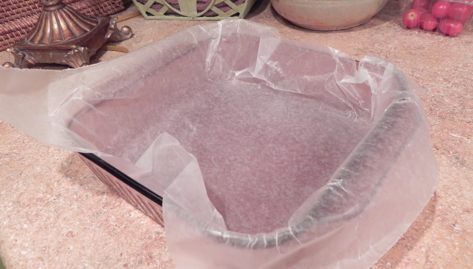 - Put the mixture into the dish lined with parchment paper and spread evenly.