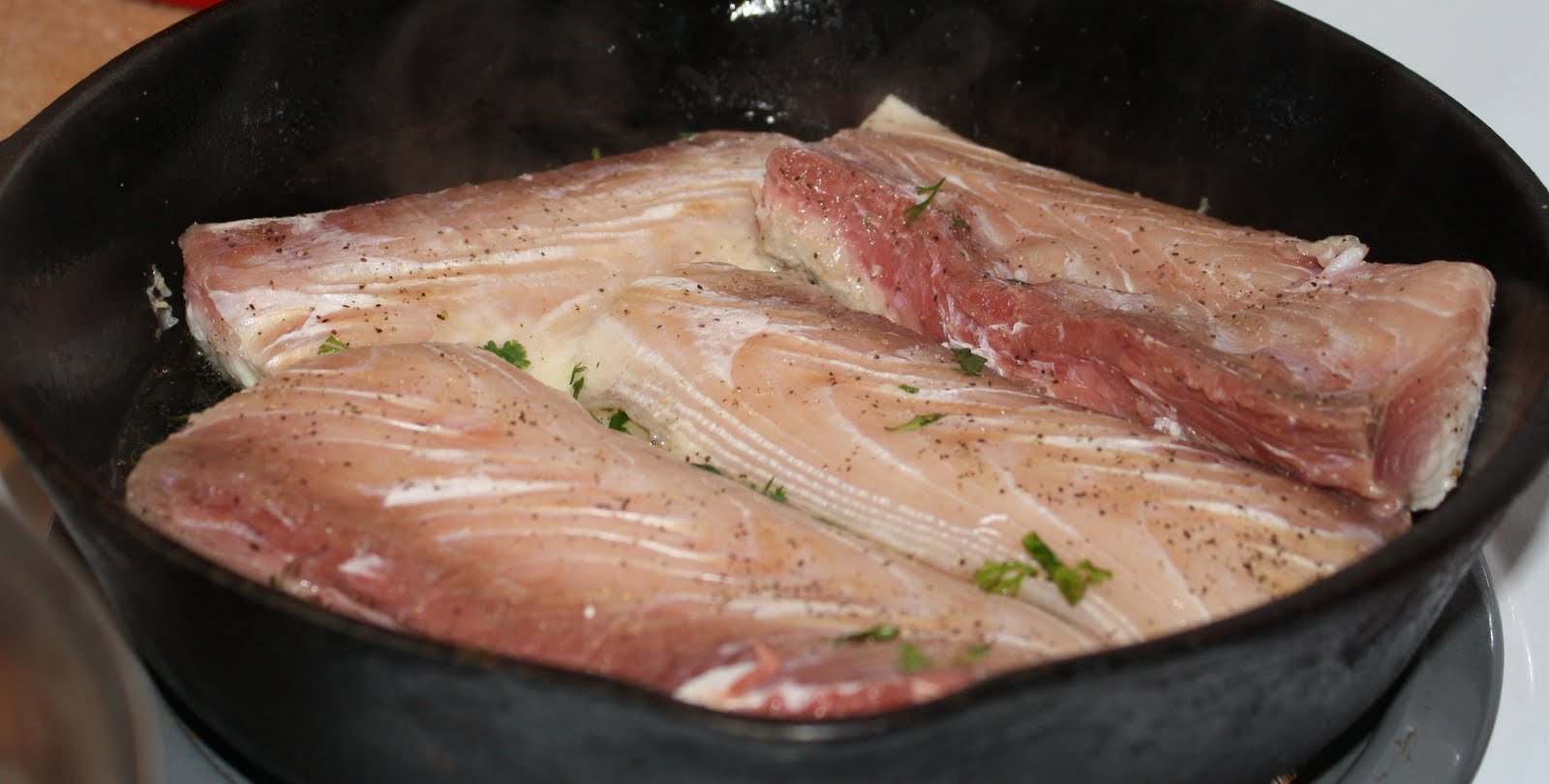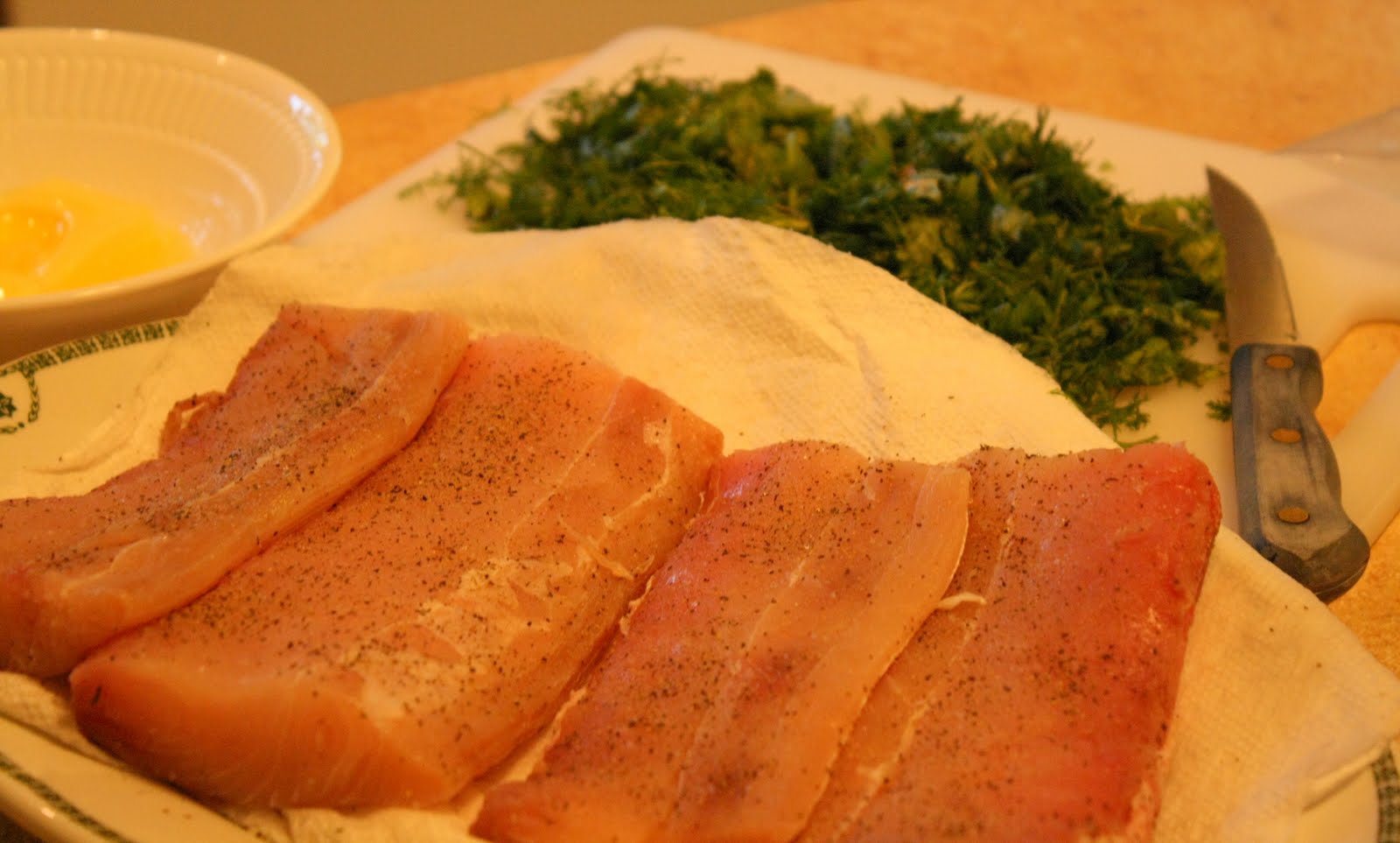 I started with about 1 1/2 lbs of fish – perfect for 2 adults and 2 teens. I cut the filet into 4 pieces, washed it gently under cold water, and patted it dry.