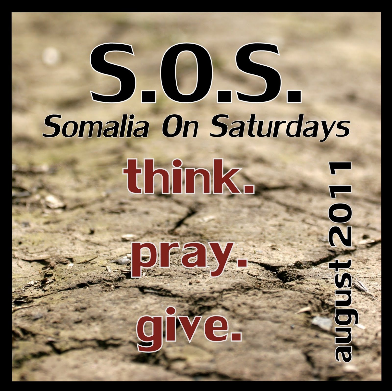 What does your Saturday look like tomorrow? Mine includes back to school shopping, some cleaning, and an airport run to start with. It’s also the first Saturday in August and the first chance to join in S.O.S. to think, pray, and give for “Somalia On Saturdays.”