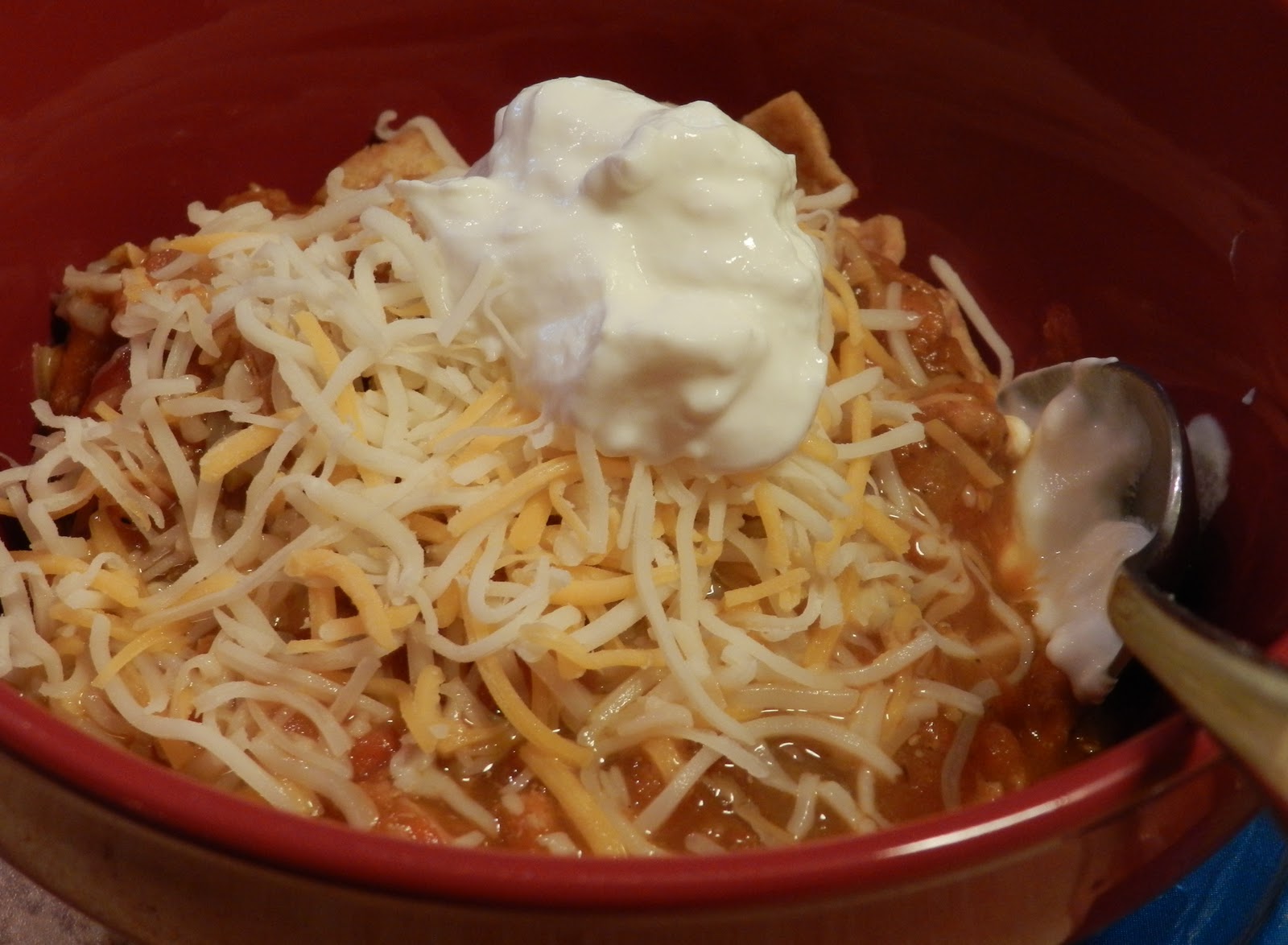 Serve over corn chips and top with cheese and sour cream. (Serves 4 teens/adults)