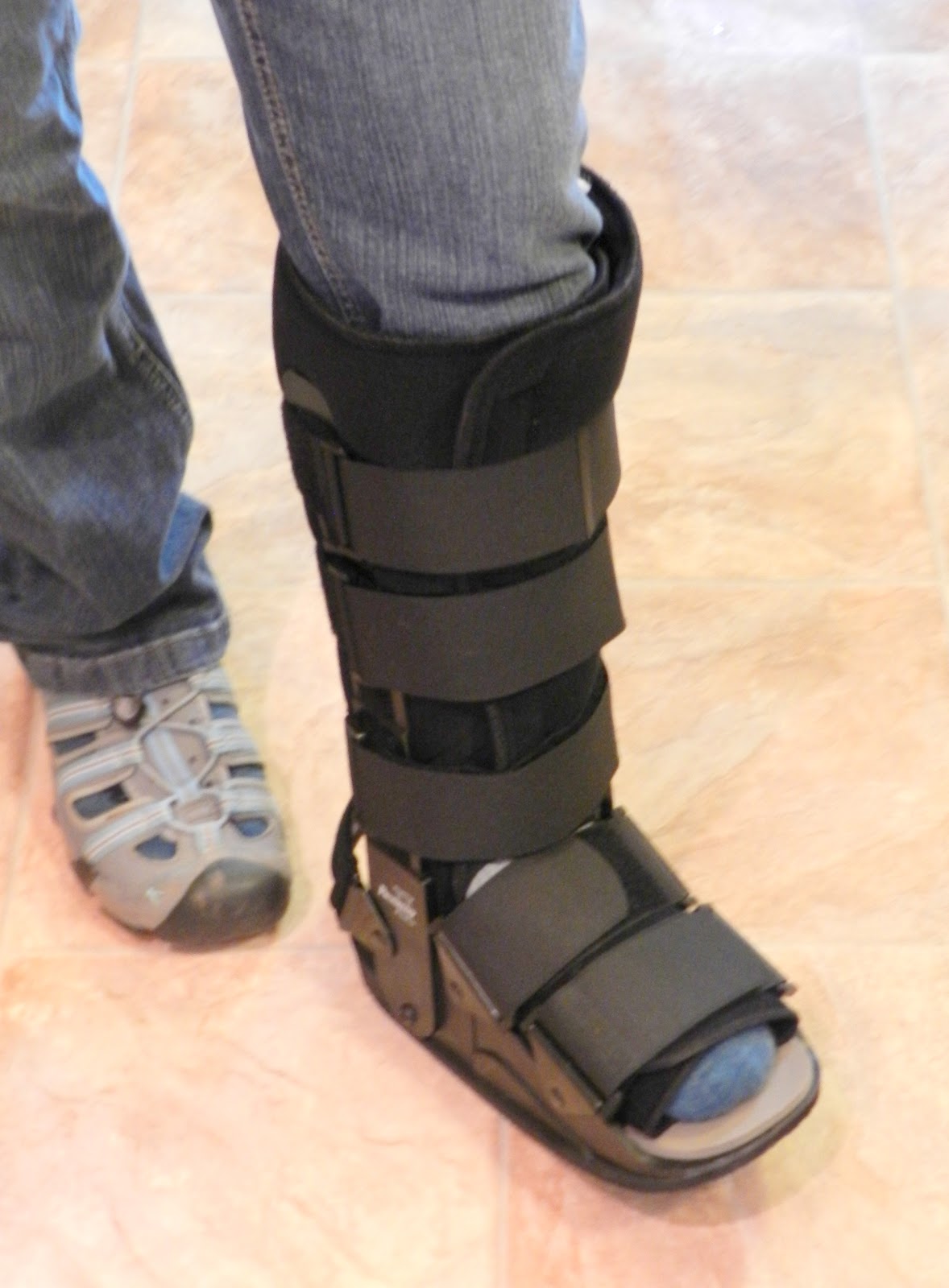 JoHanna’s cross country season ended Saturday. Sunday was a blue sky sunshine day, so and Jeff went for a father/daughter trail run (no worries about me butting in 😉 in the mountains. She came home with in injured ankle. After a visit to the sports clinic Monday night came home with a “boot,” instructions to stay off of it for weeks, and a long face. With a chip in her ankle bone, the boot will give her the support she needs in her weakness.