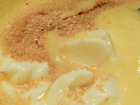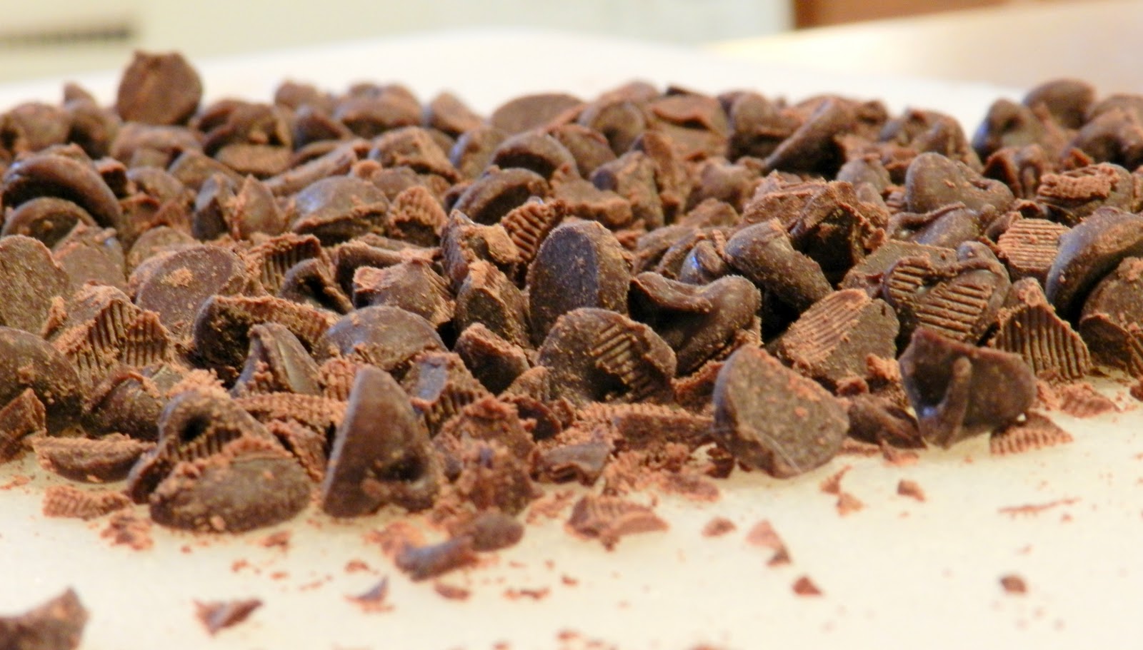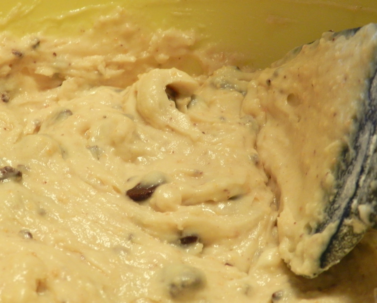 Add: 2 c. flour, 1 t. baking powder, 1/2 t. baking soda, 1/2 c. semi-sweet chocolate chips roughly chopped