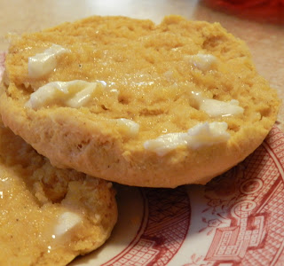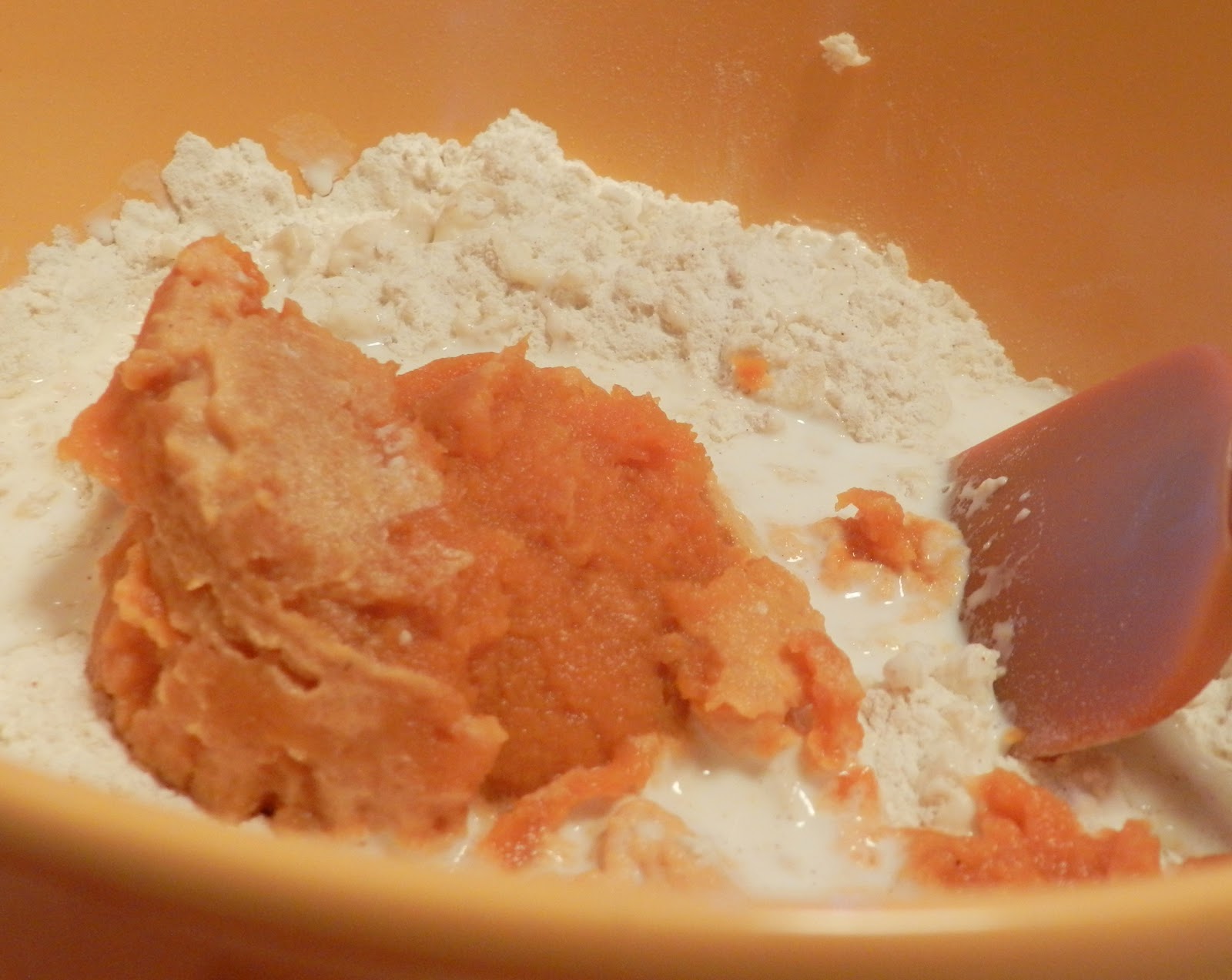 Tis the season to be baking with pumpkin! With a light pumpkin flavor, these biscuits have a flaky, moist texture, perfect for a biscuit. Very easy to make, they are PERFECT served with apple butter. I like a biscuit about 2 1/2 inches wide and rather thick, so this makes about 9 biscuits. I started with a recipe I found in A Quilter’s Christmas Cookbook, from the Good Books line of cookbooks, and I modified it to make it suit our tastes. Enjoy!