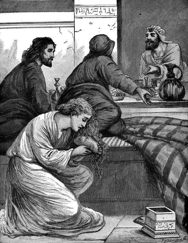 Jesus received the invitation to dine with a pharisee at his table, in his house. Despite the fact that the “woman of the city” must’ve known how she would be looked upon by the host, the chance to be with Jesus overpowered any shame or shyness she felt. She took an alabaster flask, and she boldly went in to find the Messiah. Weeping with gratitude and awe, she knelt at his feet and washed them with her tears, anointing them with the ointment. Those who see themselves as they are and see Jesus as He is can’t help but end up at the feet of the Savior.