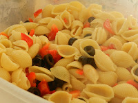 Boil 8 oz. of pasta to al dente (we like medium shells the best = 2 c. of dry pasta)