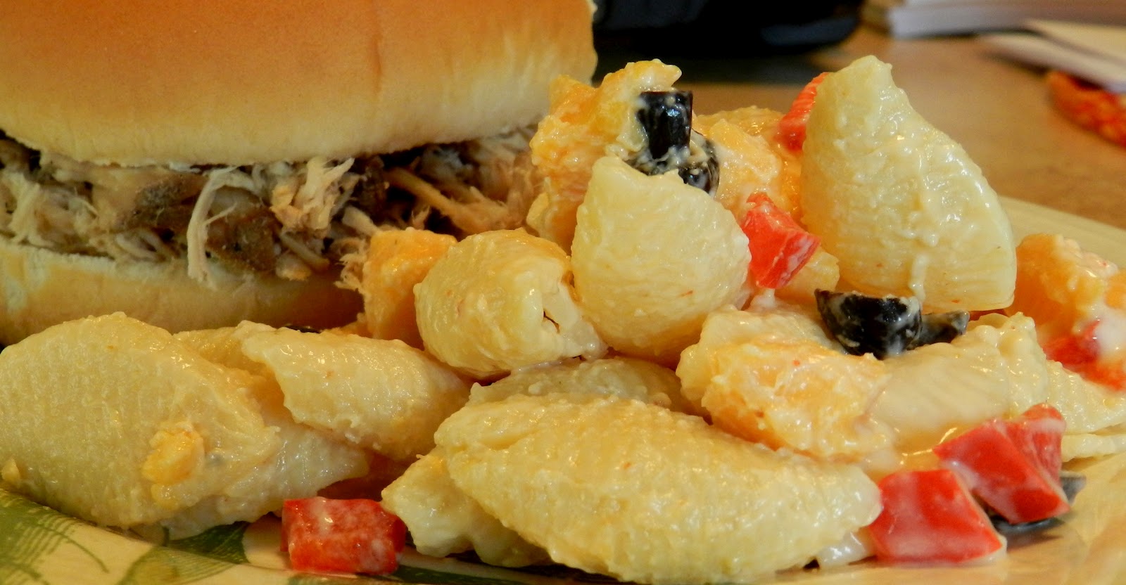The BEST combination (Jeff’s favorite warm weather meal combo) is Grilled chicken, this pasta salad, fresh corn, and fruit. Add a fresh focaccia bread with olive oil, and it’s perfection on the patio!